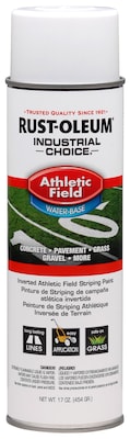 Rust-Oleum model 206043 water-based paint produces durable, long-lasting lines that withstand weather and wear. Sprays upside-down for easy use.
