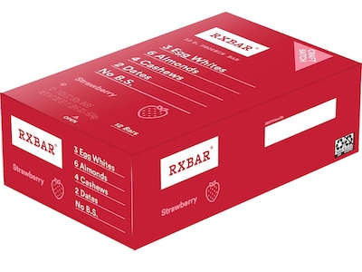 People love strawberries; drizzled on cheesecake or thrown into your favorite smoothie recipe. But what about a box of 12 RX Bar gluten-free bars, each packed with 12 grams protein paired with a few other simple ingredients? Egg whites for protein, dates to bind, and nuts for texture. Strawberry goodness you know and love, all in a portable protein bar that matches your active lifestyle.
