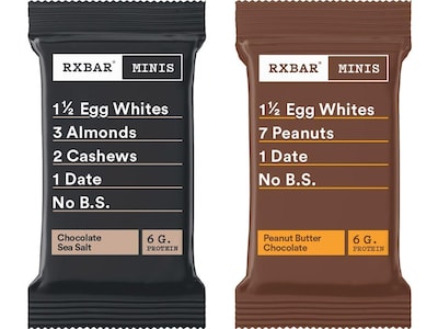 Big flavor to crush the biggest cravings, these RX Bar Minis protein bars bring the same delicious flavor of the brand's regular-size bars. Mini and pocket-size, these bars pack 6g of protein and are crafted with only real, simple ingredients. When you open this variety pack, you'll find two decadent flavors: real chocolate sprinkled with sea salt and smooth peanut butter. It's a chocolate lover's delight.