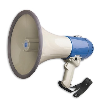 12 watts megaphone with siren is a lightweight, powerful range megaphones has 800-yard range.