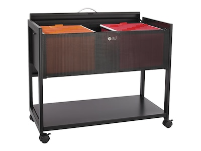 - Black file cart with powder coat finish is made of perforated steel