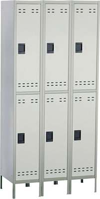 Provide dedicated space for coats, purses, shoes and other personal items with these Safco double-tier lockers. One-piece unibody design allows for fast, easy setup in a break room or locker room, and the heavy-gauge steel construction withstands frequent use in your busy office building. Each locker features a recessed handle that accommodates a padlock, so employees can secure their items while at work. These Safco double-tier lockers come with ventilated doors to reduce odors and moisture buildup inside each compartment.