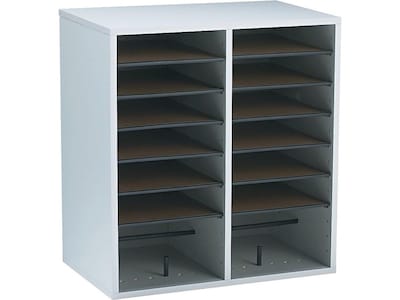 Keep folders, charts and other files tidy with this Safco 16-compartment gray wood adjustable literature organizer.