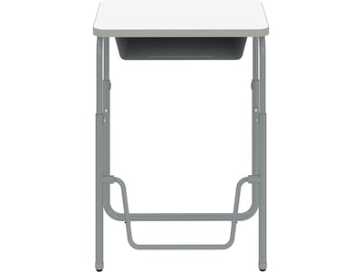 Encourage healthy movement and provide convenient storage with the Safco AlphaBetter height-adjustable student desk that features a high-pressure laminate top and an under-surface book box. This desk comfortably accommodates students as they work or sketch ideas. A pendulum footrest allows students to redirect excess energy and continue to move, even as they sit, providing ergonomic support, increasing comfort, and promoting cardiovascular health. Great for boosting productivity and focus, this student desk has the added benefit of optional casters for better mobility throughout the classroom, and a convenient book cubby right beneath the desktop. The 29"-43" desk accommodates students in 5th grade and up, along with adults, at seated and standing heights.