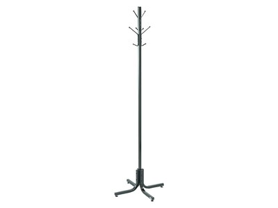 Keep your workspace neat and tidy with this black coat tree. The four double hooks accommodate jackets, sweaters, scarves, and other apparel items, keeping them easily accessible. Durable steel construction stands up to repeated use, while the rounded ball hooks prevent damage to clothing. This Safco coat tree features a wide 21-inch base for added stability on a wide range of flooring surfaces.