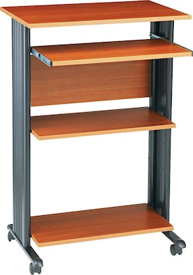 Safco® Stand-up computer workstation in cherry finish features heavy-duty, powder coated steel frame to secure your CPU/printer.