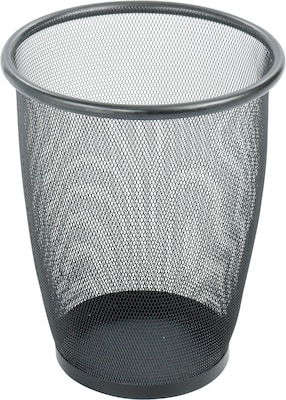 Safco Onyx 9717 Black Mesh Round Wastebasket features sturdy steel rim and welded construction, and its unique mesh design allows air flow, hindering the growth of mold and odor.