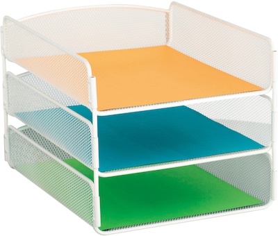 Safco Onyx Triple Tray Mesh Desk Organizer, White (3271WH)