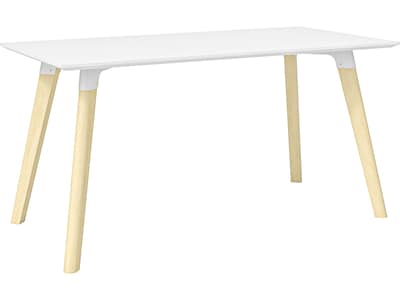 Heighten your productivity with the modern Safco Resi desk and win every workday. Perfect for the office or WFH'ers, this versatile desk features a durable white laminate work surface with a knife edge to protect both your surroundings and forearms. The solid maple legs create a contemporary two-tone look that makes it easy to mix and match with other office essentials. Add coordinating mobile storage to neatly stash those high-profile project files.