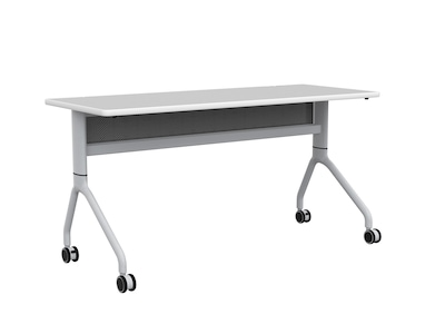 With a high-pressure laminate top, folding and nesting capabilities, and dual-wheel casters, the Safco Rumba flip table is ready for anything you can throw at it. Use the ganging capabilities to extend a bank of tables and configure them into multiple styles to meet the needs of any workspace. The top folds down to easily nest together with other tables for compact storage when not in use. Features integrated cable management and mesh modesty panel. Perfect for training rooms, education environments, collaboration areas, open office plans, and conference rooms.