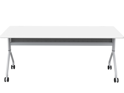 With a high-pressure laminate top, folding and nesting capabilities, and dual-wheel casters, the Safco Rumba flip table is ready for anything you can throw at it. Use the ganging capabilities to extend a bank of tables and configure them into multiple styles to meet the needs of any workspace. The top folds down to easily nest together with other tables for compact storage when not in use. Features integrated cable management and mesh modesty panel. Perfect for training rooms, education environments, collaboration areas, open office plans, and conference rooms.