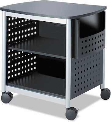 Keep your printer and supplies conveniently mobile and organized with this Safco desk side printer stand. The adjustable shelf height allows you to customize your storage, and the locking casters ensure the stand stays place when necessary. Constructed of metal, this printer stand is durable and perfectly suited for supporting the weight of printers and additional supplies. This Safco Scoot mobile printer stand is perfect for any office or home use.