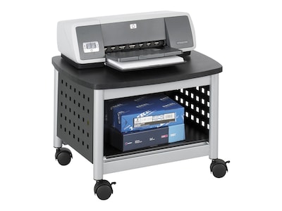 This Safco under-desk printer stand is made with a steel frame to provide the longevity and storage capacity (up to 100 pounds) you need. The top of the mobile cart provides enough space for nearly any desktop printer, while the lower shelf allows for plenty of storage--ideal for printing supplies. The steel frame is finished with a black powder-coat finish with a black laminate top to keep the cart looking great into the future.