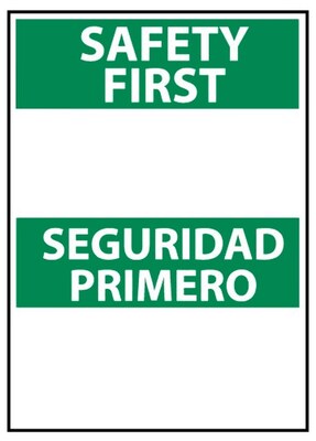 Safety First Seguridad Primero Blank, Bilingual, 14X10, .040 Aluminum