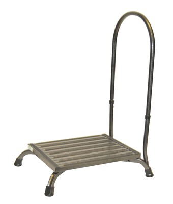 Safety Step features an anti-tip design to prevent the step from toppling over and an anti-slip surface to avoid slipping. Safety Step also has durable steel reinforced rubber feet to prevent the step from sliding. Although, our steps are very robust in appearance, they are actually very light to pick up. The H-05C-V weighs 15 lbs and offers a detachable handle for extra stability while stepping up or down from the step. The deck size is 15"x19" and 6" tall. MADE IN THE USA.