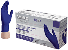 Ammex Professional Series Powder Free Nitrile Exam Gloves, Latex Free, Medium, Indigo, 100/Box (AINPF44100)