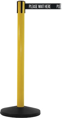 SafetyMaster 450 Yellow Stanchion Barrier Post with Retractable 8.5' Black/White PL WAIT HERE Belt