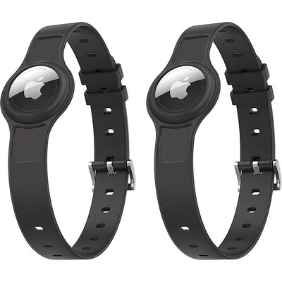 SaharaCase Adjustable Silicone Dog Collar for Apple AirTag, Small and Medium Dogs, Black, 2/Pack (AT00041)