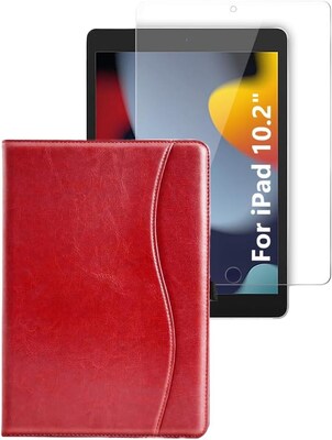 SaharaCase Apple iPad 10.2" (7th, 8th, & 9th Gen 2021) Protection Bundle, Folio Case with Tempered Glass Screen, Red