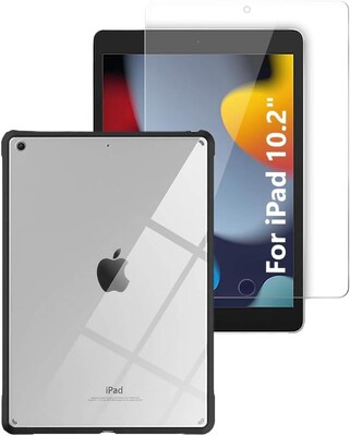 SaharaCase Apple iPad 10.2" (9th Gen 2021) Protection Bundle, Hybrid-Flex Case with Tempered Glass Screen, Clear Black