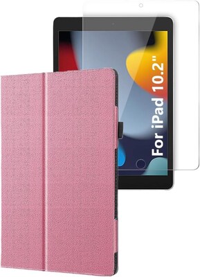 SaharaCase Apple iPad 10.2" (9th Generation 2021) Protection Bundle, Bi-Fold Folio Case with Tempered Glass Screen, Rose Gold