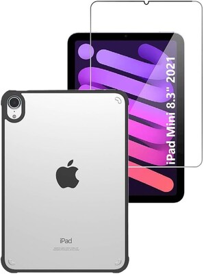 SaharaCase Apple iPad mini (A17 Pro) and Apple iPad mini (6th Generation 2021) Protection Bundle, Hybrid-Flex Case with Tempered Glass Screen, Clear Black