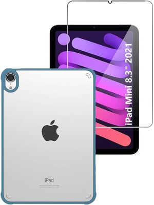 SaharaCase Apple iPad mini (A17 Pro) and Apple iPad mini (6th Generation 2021) Protection Bundle, Hybrid-Flex Case with Tempered Glass Screen, Clear Blue