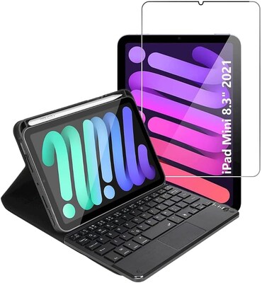 SaharaCase Apple iPad mini (A17 Pro) and Apple iPad mini (6th Generation 2021) Protection Bundle, Keyboard Folio Case with Tempered Glass Screen, Black