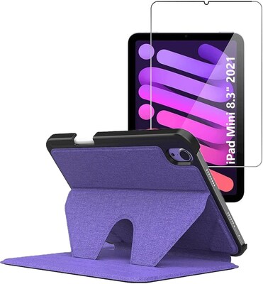 SaharaCase Apple iPad mini A17 Pro & 6th Generation 2021 Protection Bundle, Multi-Angle Case with Tempered Glass Screen, Purple