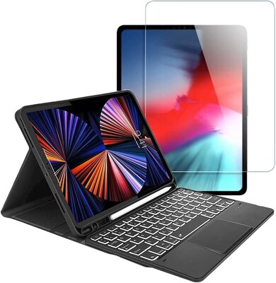SaharaCase Apple iPad Pro 12.9" (4th,5th, and 6th Gen 2020-2022) Bundle, Keyboard Folio Case with Tempered Glass Screen, Black