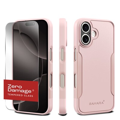 SaharaCase Classic MagSafe Phone Case with Tempered Glass Screen Protector for iPhone 16 Plus, Shock Absorbing, Desert Rose