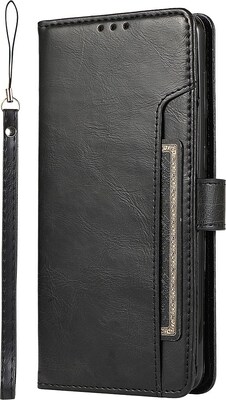 SaharaCase Genuine Leather Folio Wallet for Samsung Galaxy S24+, Shock Absorbing, Black (CP00541)