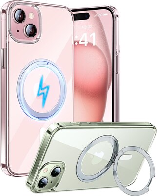SaharaCase Hybrid-Flex Kickstand MagSafe Phone Case for iPhone 15, Shock Absorbing, Clear (CP00442)