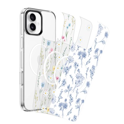This innovative case comes with three interchangeable magnetic backplates, each featuring delicate floral designs that allow you to personalize your phone's look with ease. Compatible with wireless charging, this case ensures seamless wireless charging and provides strong magnetic alignment. The slim, transparent design highlights your iPhone's sleek profile while offering reliable protection against everyday drops and scratches.