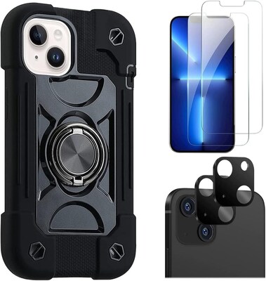 SaharaCase iPhone 14 Plus 6.7" Bundle, DualShock Case with Tempered Glass Screen and Camera Protector, Black