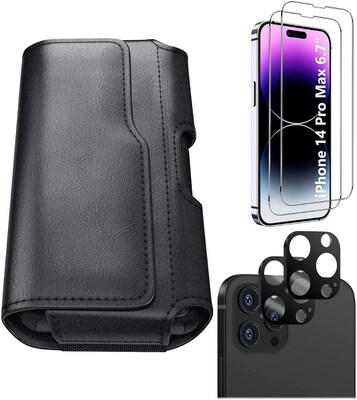 SaharaCase iPhone 14 Pro Max 6.7" Bundle, Holster Case with Tempered Glass Screen and Camera Protector, Black