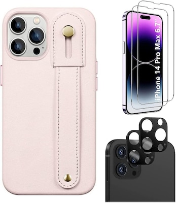 SaharaCase iPhone 14 Pro Max 6.7" Protection Bundle, FingerGrip Case with Tempered Glass Screen and Camera Protector, Light Pink