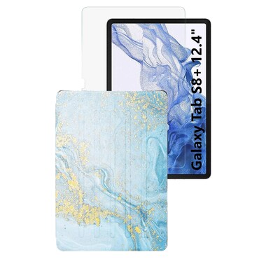 SaharaCase Samsung Galaxy Tab S8+ Protection Bundle, Multi-Angle Folio Case with Tempered Glass Screen, Blue Marble