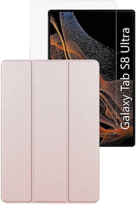 SaharaCase Samsung Galaxy Tab S8 Ultra Protection Bundle, Folio Case with Tempered Glass Screen, Clear/Pink
