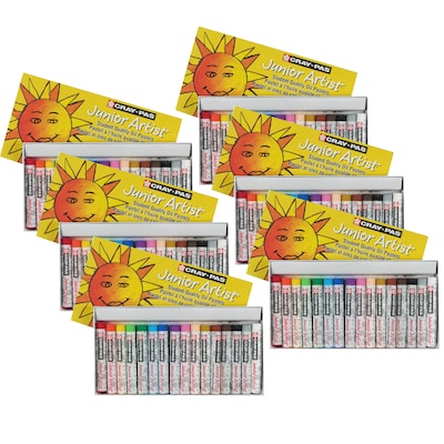 Invented in 1921, Sakura is the original inventor of oil pastels. Cray-Pas Junior Artist provides beautiful and blendable color for young hands. The best art curriculums nationwide use Cray-Pas to teach and practice art introductory techniques. Cray-Pas oil pastels can create oil paint effects, will not peel, crack or flake, are easily blendable, and are safe for children. The round shape of Cray-Pas Junior Artist is easy to hold, and are great for drawing, lettering, scratch art, and long lasting sidewalk art. Cray-Pas are excellent on paper, cardboard, and canvas. Pastels measure 8mm x 60.8mm. Each pack includes 16 oil pastels in assorted colors. Sold as 6 sets for a total of 96 oil pastels.