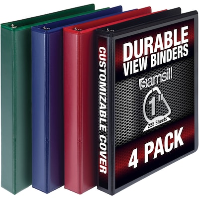 Samsill Durable View Binders 3 D-Ring, Black, Blue, Red, Green, 4 Pack (MP46409)