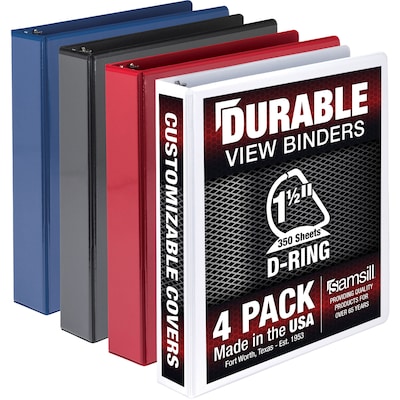 Samsill Durable View Ring Binders 3 D-Ring, Assorted Color, 4 Pack (MP46458)