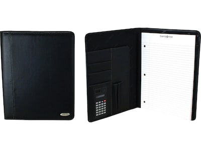 Equip sales representatives or accounting staff with this writing padfolio. Its built-in calculator lets you check equations for accuracy, and the internal pockets provide space for pens, business cards, and files. The lined notepad and vinyl exterior of this Samsonite bi-fold writing padfolio create a stylish appearance ideal for professionals.