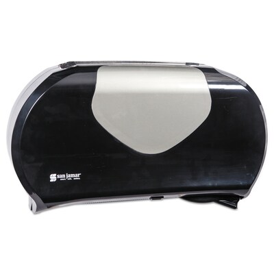 San Jamar Twin Jumbo Bath Tissue Dispenser, 20-1/14" x 5-7/8" x 11-9/10", Black (SJMR4070BKSS)