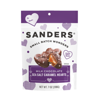 Sanders Premium Sea Salt Caramels offer consumers our slow-cooked, small-batch caramel confections in 7oz pouches perfect for Valentines Day