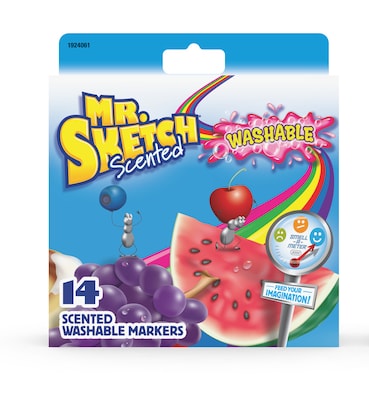 Washable markers in bright colors and juicy scents. The bright vivid colors come in two varieties to draw both thick and thin lines. Authentic, juicy scents and vibrant washable inks. Make coloring even more fun! Spark young artists imagination and unleash creativity.Specifications Global Product Type - Markers - Art. Marker Type - Art. Tip Type - Chisel. Ink Types - Non - Washable. Tip Size - Bold. Color - Assorted. 14 per pack.