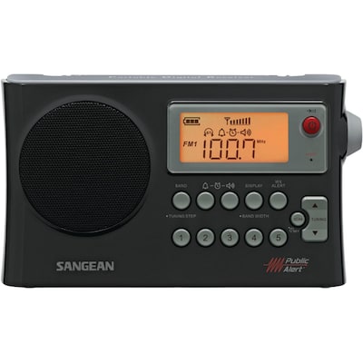 This AM/FM Weather Alert Portable Radio from Sangean has AM Auto Tracking and Bandwidth Narrowing for superior AM reception, sensitivity and sound. This versatile radio has built-in weather alert functionality, a dual alarm clock, 25 presets and an easy-to-read LCD display. Internet and television are usually good sources of weather information, but in some weather emergencies a portable radio is essential. The PR-D4W will ensure that you have weather information anytime during a storm or emergency.