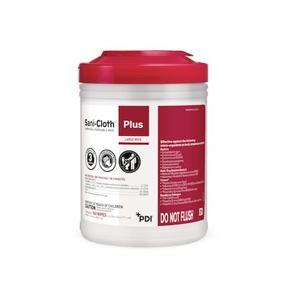 Clean various surfaces, including steel, glass, and other non-porous exteriors with these wipes. The low-alcohol formula is proven effective at destroying bacteria, viruses, and fungus, helping guard against illnesses such as influenza, E. coli, and MRSA. These disposable Sani-Cloth Plus wipes come in a pop-up canister for easy dispensing.