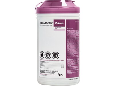 Powered by a next-generation proprietary blend of quaternary ammonium, isopropyl alcohol (IPA) and ethanol, the Sani-Cloth Prime wipe unique combination delivers speed - a true 1-minute bactericidal, fungicidal, virucidal, and tuberculocidal disinfectant - and the power to destroy over 50 microorganisms, including Candida auris, along with 17 multidrug-resistant organisms (MDROs) such as MRSA, CRE, and VRE.