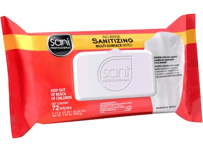 Sani Professional Sanitizing Multi-Surface Wipe, 72/Pack, 12 Packs/Carton (M30472)
